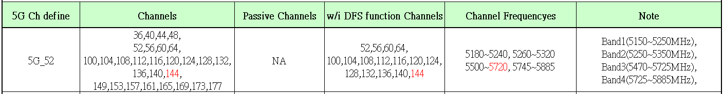 The 5G channel encoding 5G_52 provides detailed 5G channel specifications: