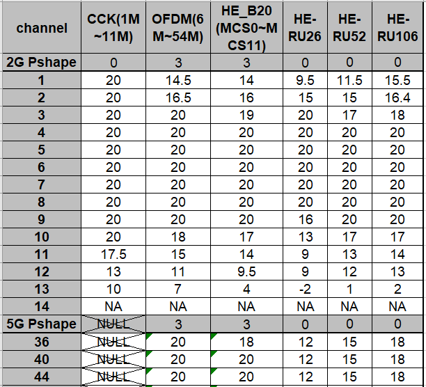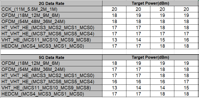 Ignore the “2G Regulation” and “5G Regulation” columns - these are retained for legacy compatibility only and unused in Ameba series.