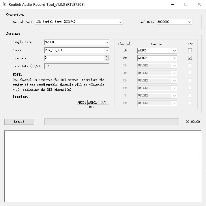 Audio Recorder is designed by Realtek to set up the audio configurations of Ameba chip, capture the audio data from Ameba chip and record it to PCM/WAV file.
