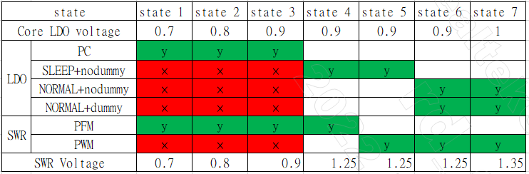 LDO_1.8V 开关控制需要由HW PMC完成 (默认打开到normal mode1, 并使能Level1的dummy loading) .