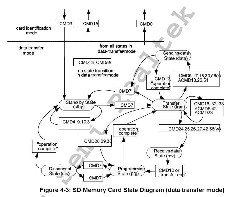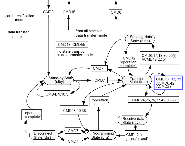 The following diagram is SD Memory Card state diagram in data transfer mode: