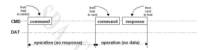 The basic transaction on the SD/MMC bus is the command/response transaction. This type of bus transactions transfer their information directly within the command or response structure. In addition, some operations have a data token.