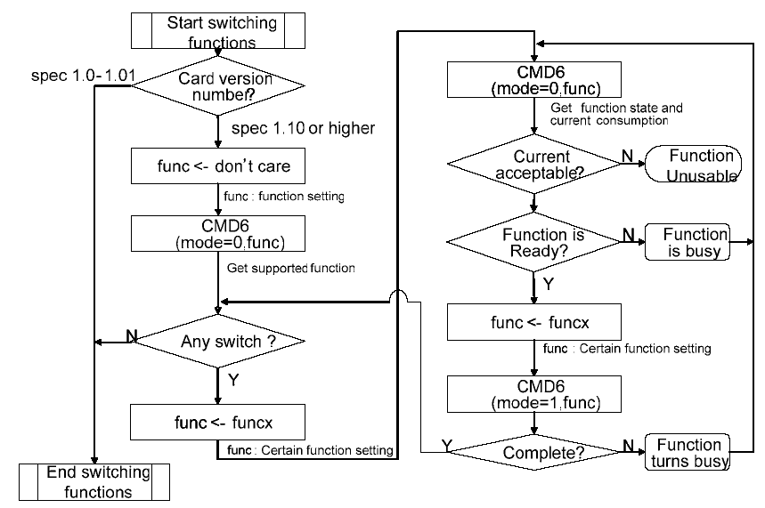 SD Switch function command (CMD6) is used to switch or expand memory card functions. Currently, there are two function groups defined: