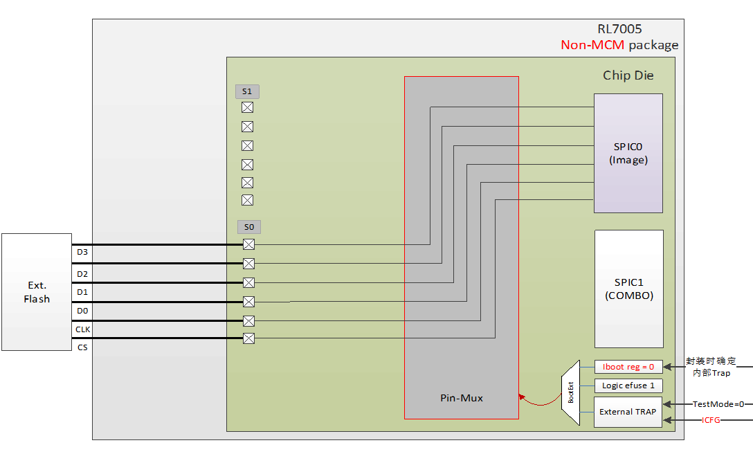 MCM 时使用外部 flash,通过 S0这组pad,此时用于FT测试,速度可以适当降低