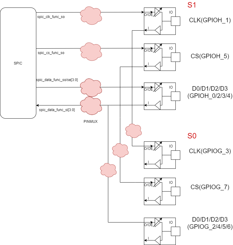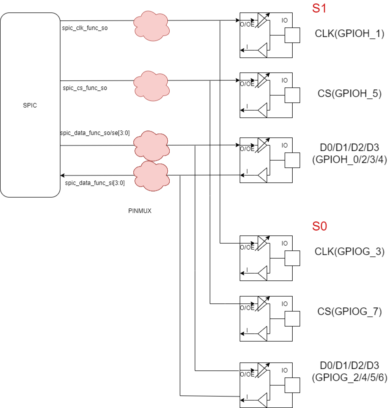 pinmux S1 pad to SPIC function(S1的D0, D1 分别只用做input, output , 不是inout)