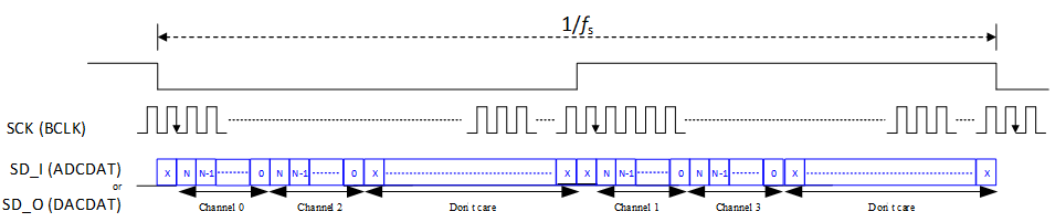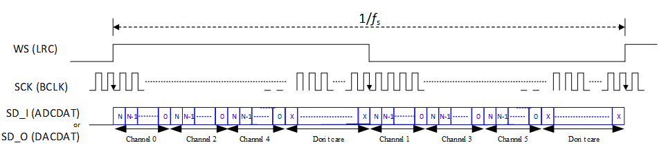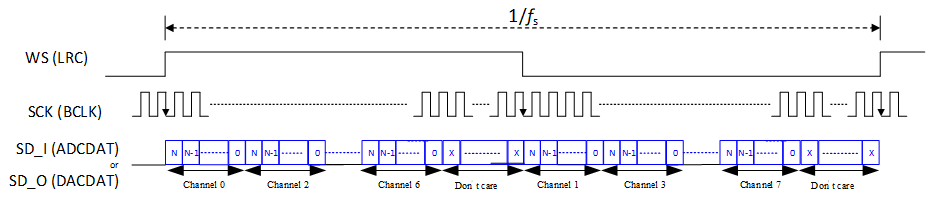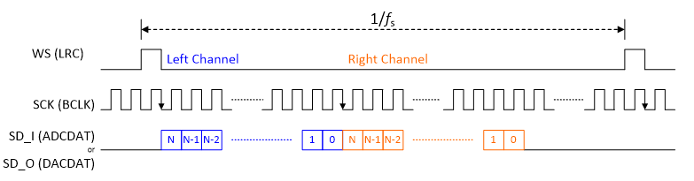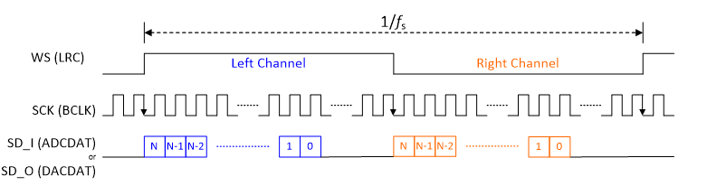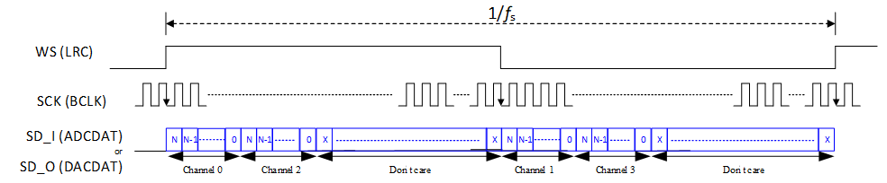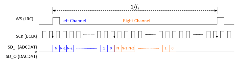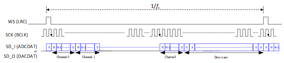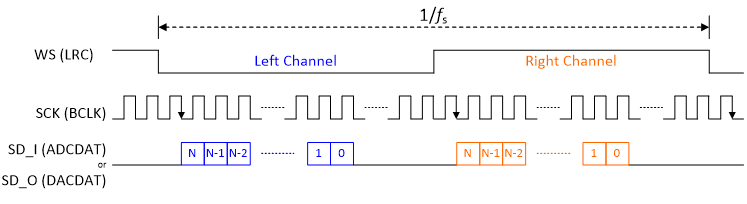 WS = 0: channel 1 (left)WS = 1: channel 2 (right)