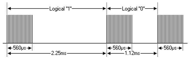 We divide this waveform into four symbols: 560μs carrier symbol, 1690μs (2250μs ~ 560μs) no carrier symbol, 560μs carrier symbol, and 560μs (1120μs ~ 560μs) no carrier symbol. Compare the above two calculating methods, we can find that by using a compensation mechanism, the accuracy can be improved.
