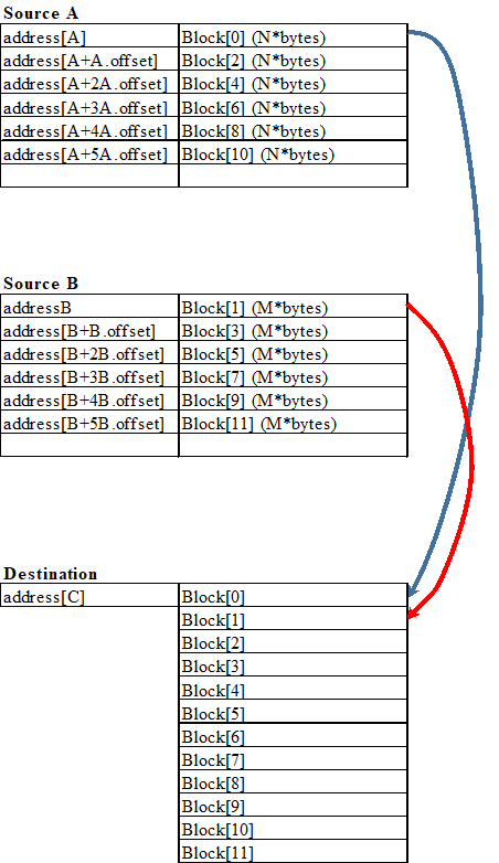 屏幕每一行的像素数据均由Current Frame 与Target Frame 的对应行在内存中的部分像素数据共同组成(见下方示意图);