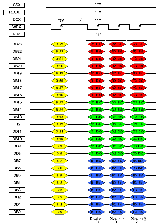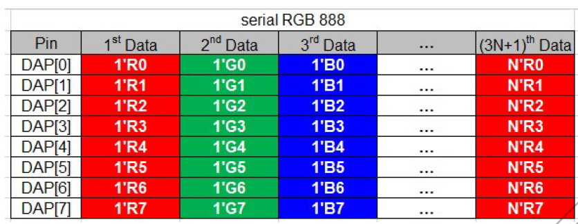24bit-RGB888, 8bit-RGB888, 16bit-RGB565, 6bit-RGB565