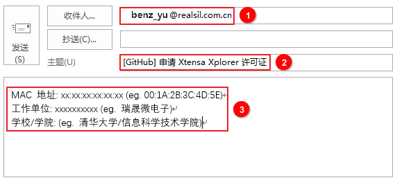 Xplorer IDE 需要有效的许可证才能正常使用。联系 benz_yu@realsil.com.cn 可申请一份临时许可证。申请许可证时,邮件中必须包含以下信息: