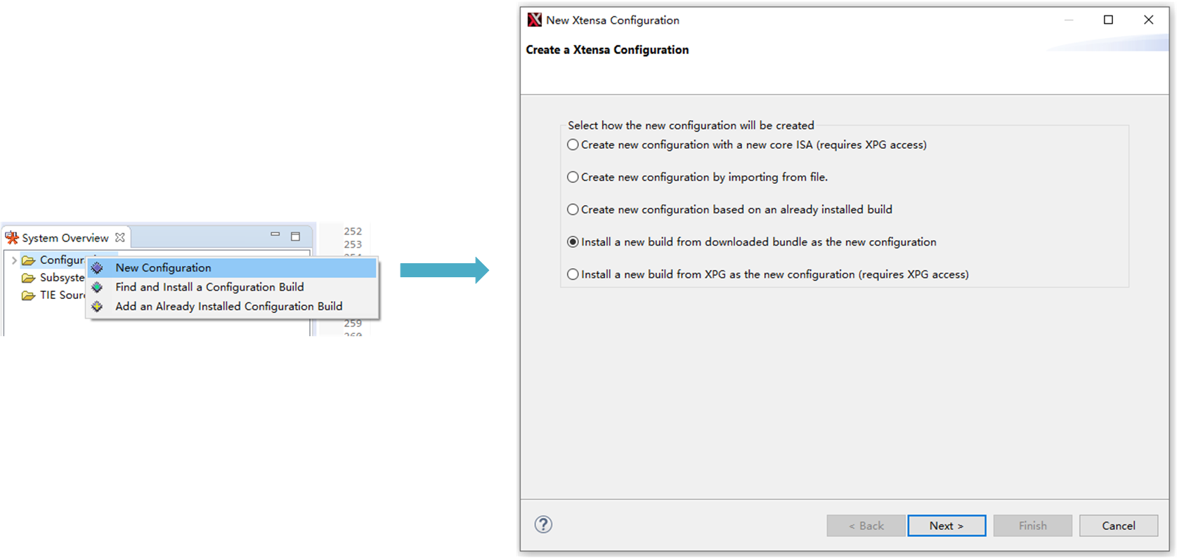 配置包 (Build Configuration) 描述了 Tensilica 处理器实现所需的全部参数和编译组件。在开始 DSP 开发前,必须安装相应的编译配置。