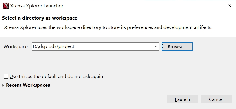 启动 Xplorer IDE,导入 <dsp_sdk>/project 作为工作区,尝试编译 project_dsp 工程。