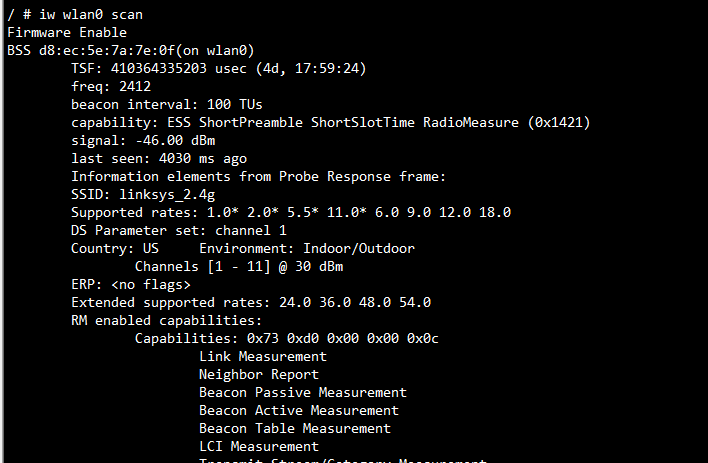 下图显示了上述命令的结果。它打印了扫描到的接入点的详细信息。