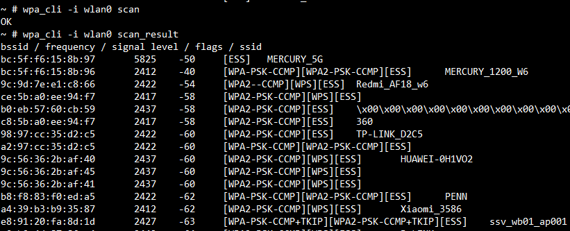以下命令用于扫描 wlan0 并获取扫描结果。