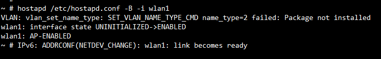 以下命令可以在后台运行 hostapd,并在 wlan1 上启动 softap。