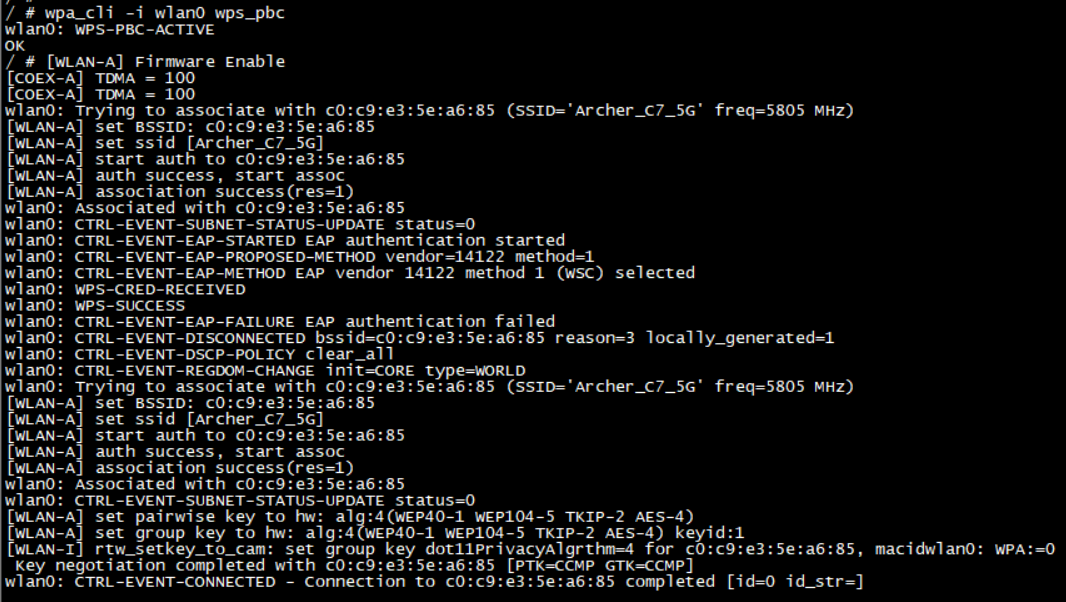 对于 WPS,当接入点支持并启用相关功能时,可以使用以下命令。
