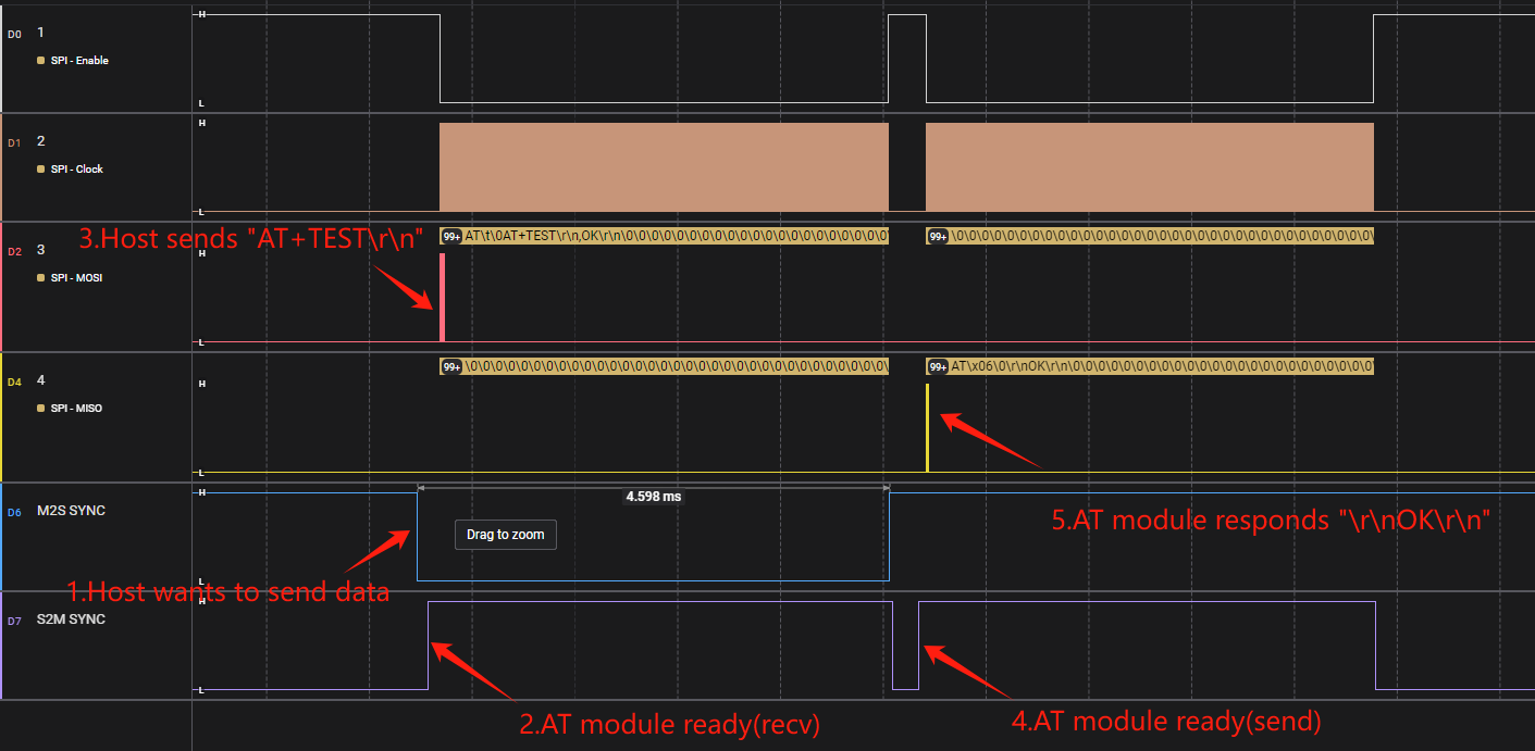 SPI AT 命令交互时序如下图所示: