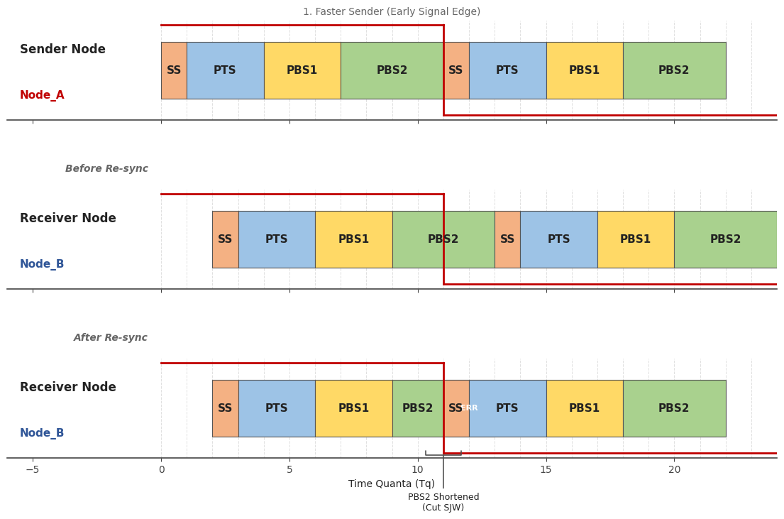 发送节点因未收到 ACK 而判定发送失败,若其使能了自动重传机制,会立即重发该帧。此时 A2C 模块已完成唤醒初始化,可以正常接收这笔 重传 的报文。