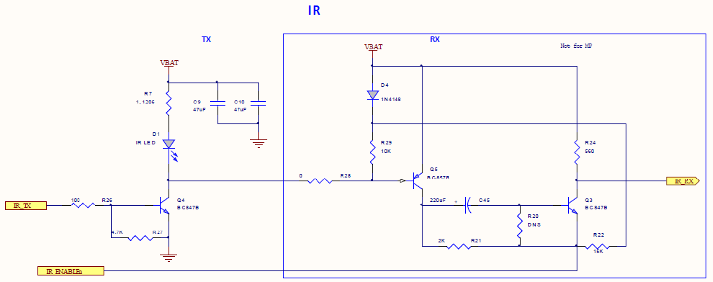 我们在 红外收发电路 中推荐的电路可支持最高 70qkHz 载波频率,但可选用更优晶体管以获得更高支持频率。