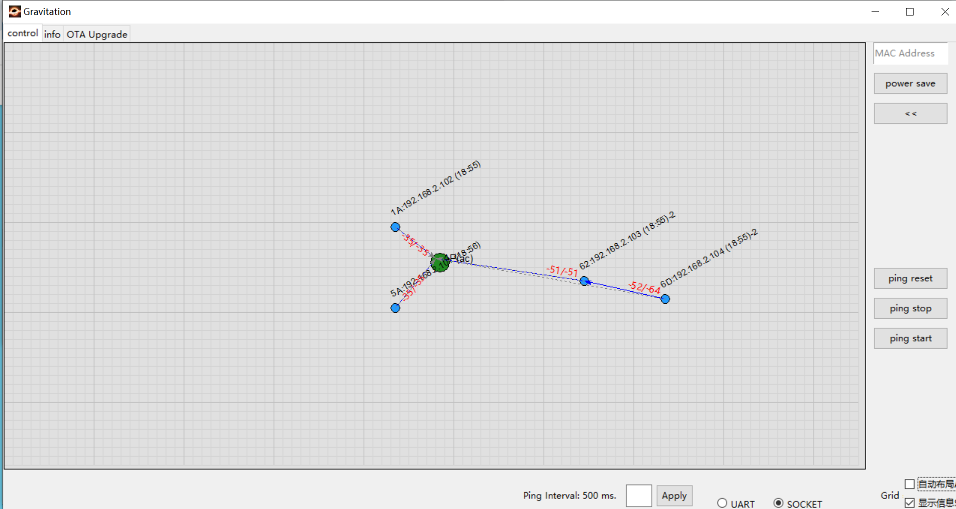 节点上方显示一些基本信息: MAC_Addr[5]:IP(更新时间)。