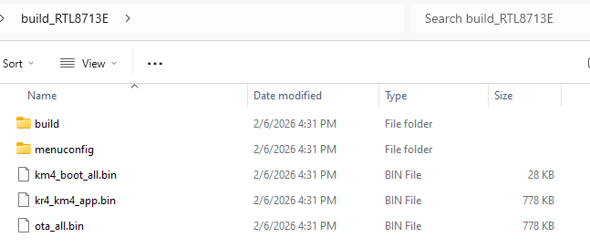 编译的中间产物位于 build_RTLxxx/build 目录,最终固件位于 build_RTLxxx 目录。