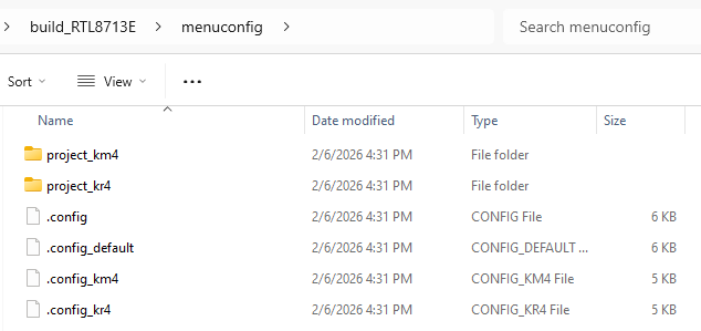配置产物位于 build_RTLxxx/menuconfig 目录下,其中 RTLxxx 为配置的芯片型号。
