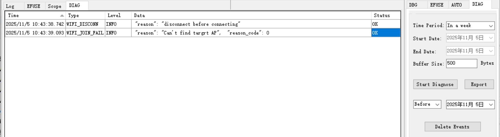 diagnose_main.py修改WiFiDiagnoseServer.diag_read_events()的输入参数,以限定需要拉取的设备时间戳区间。