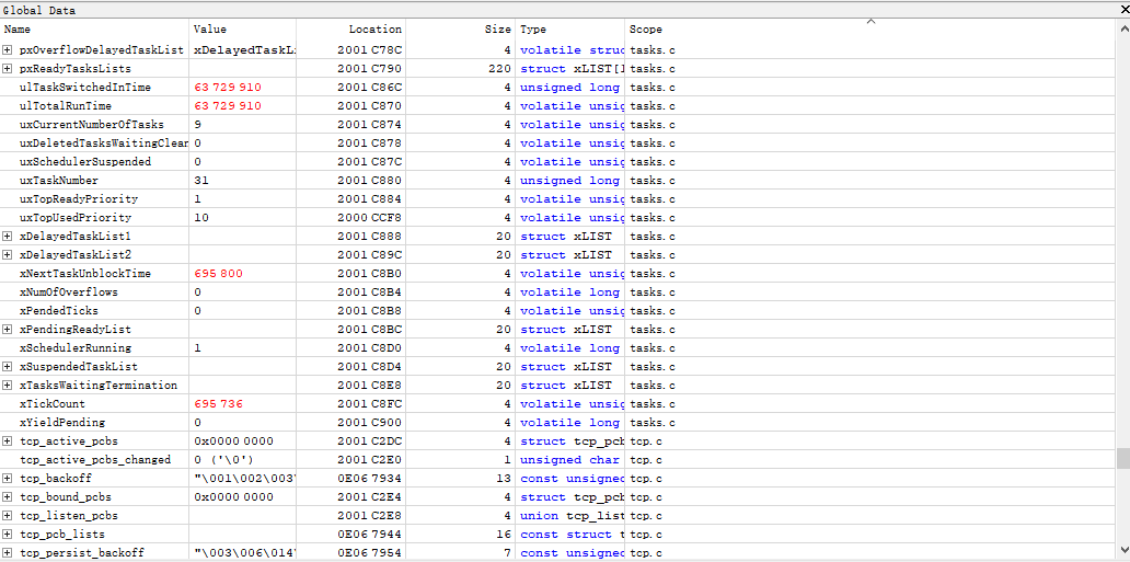 代码断点:在 File Scope 区打开的 c 文件中,点击代码行左侧的灰色圆点即可添加