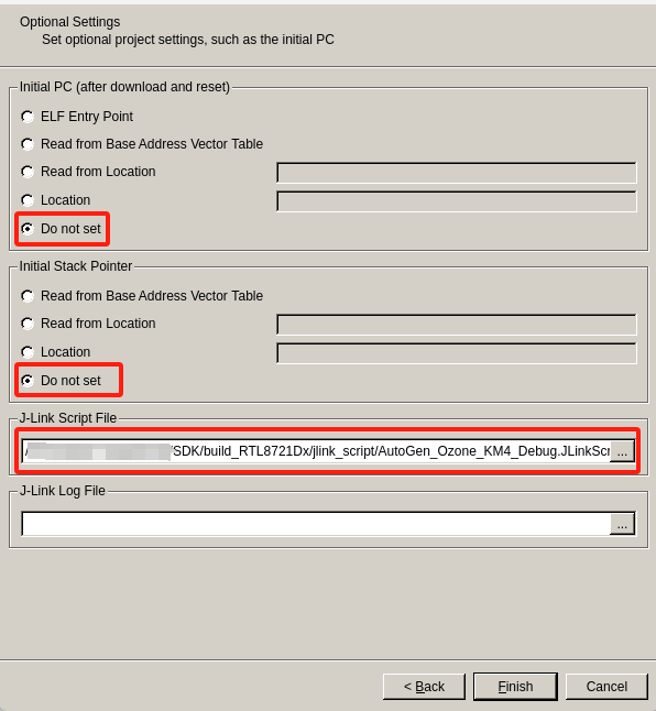 如需自定义输出路径,可使用 -sd 参数,例如: ameba.py jlink -t ozone -sd <jlinkscript_path>