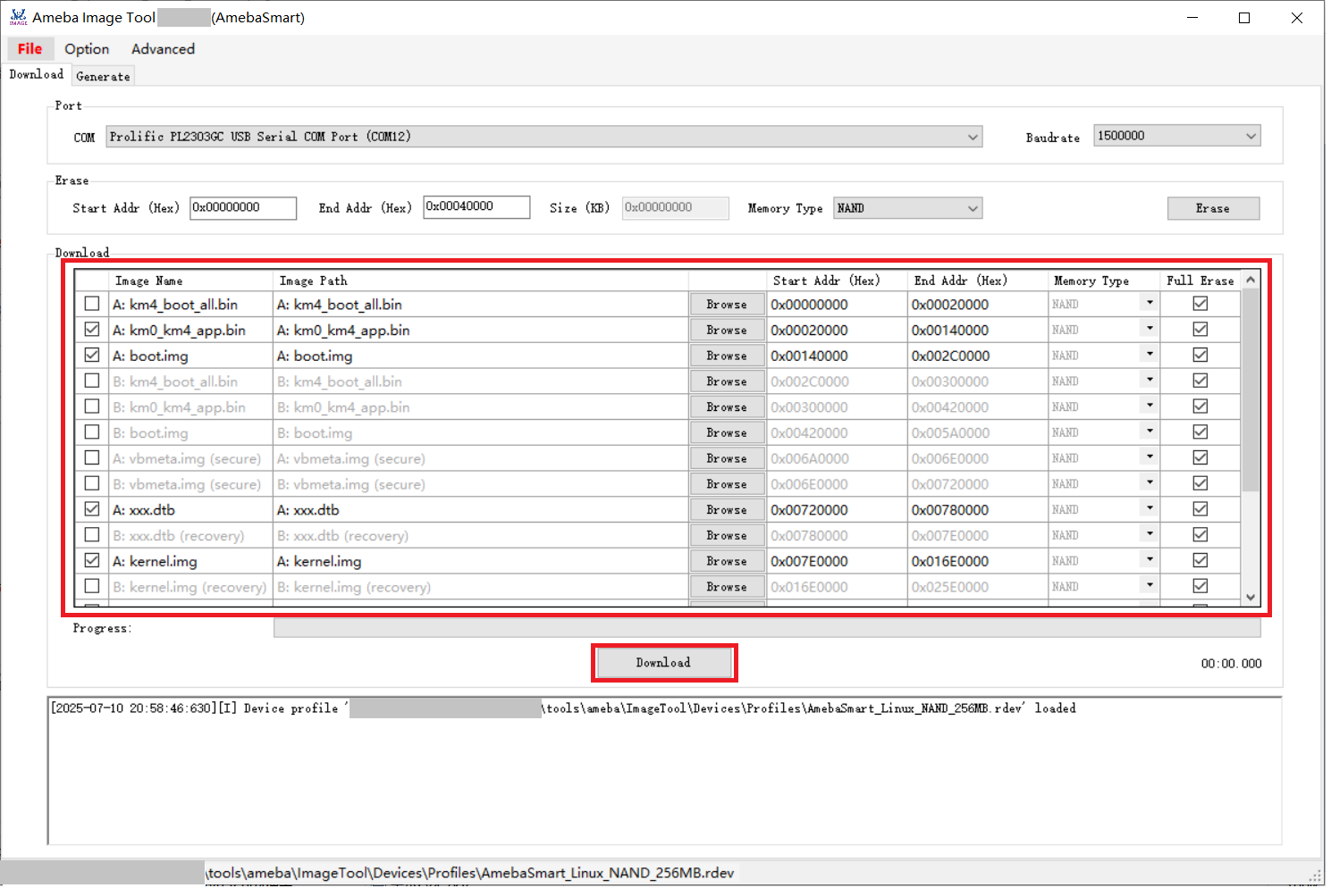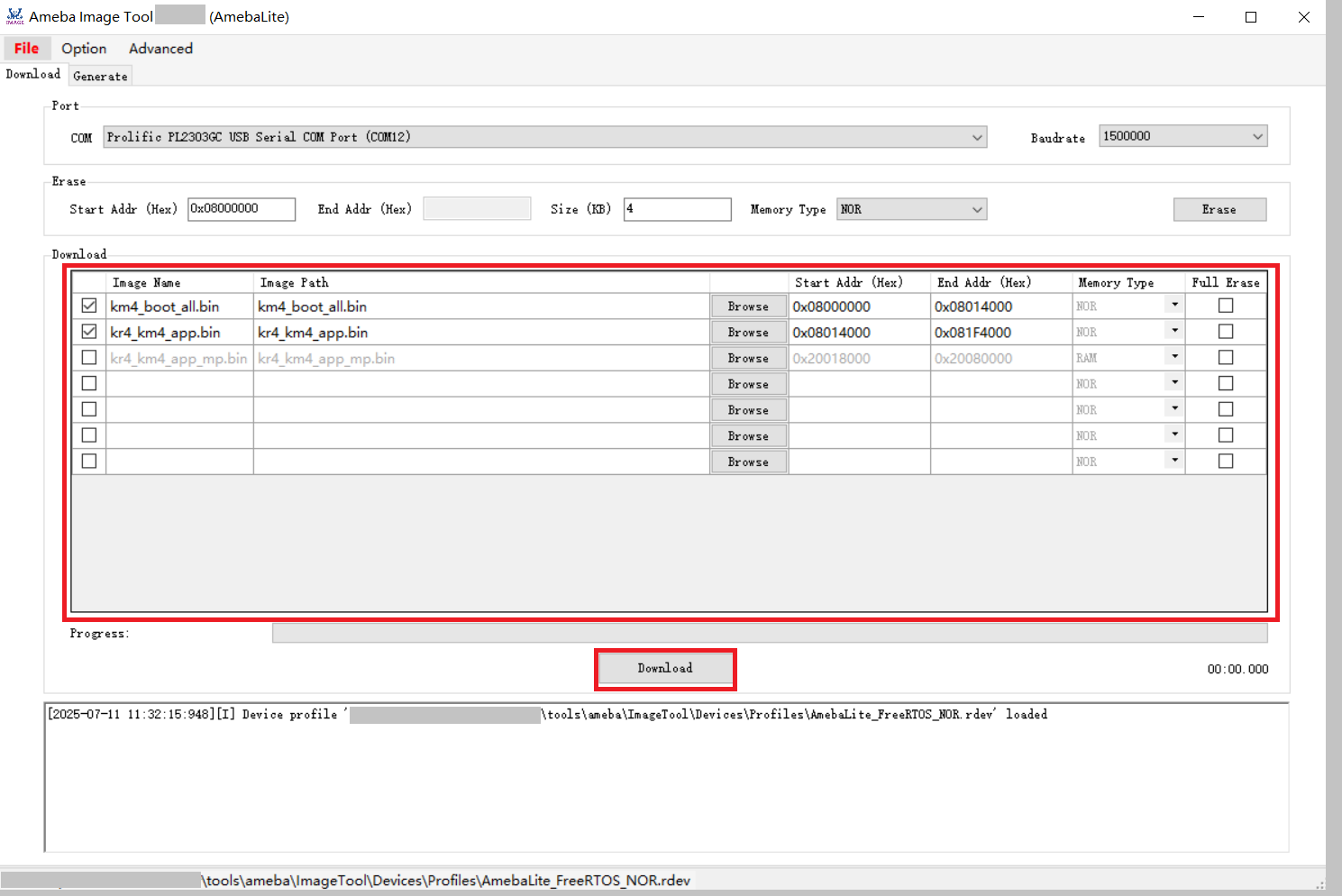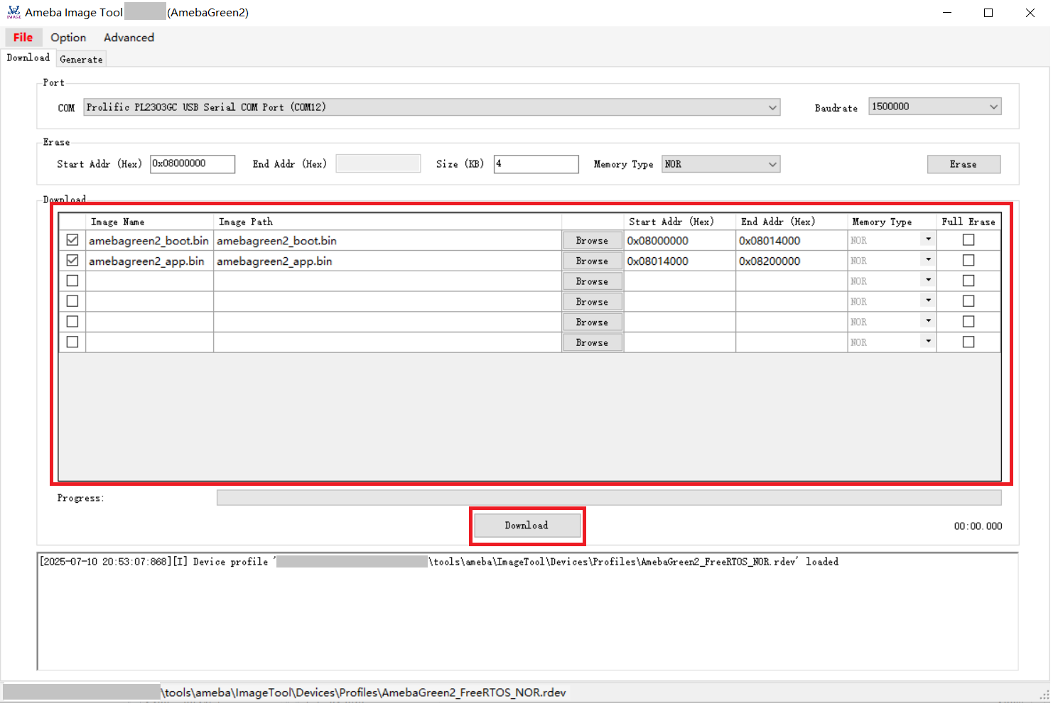 RTL8710F.rdev。打开 Image Tool, 点击 并选择适当的 Device Profile