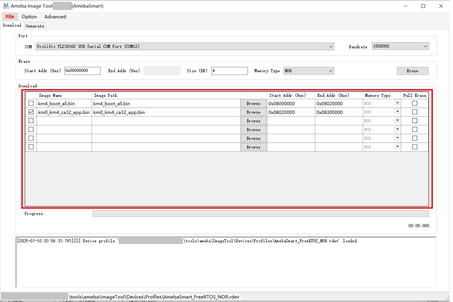 RTL8720E.rdev。打开 Image Tool, 点击 并选择适当的 Device Profile