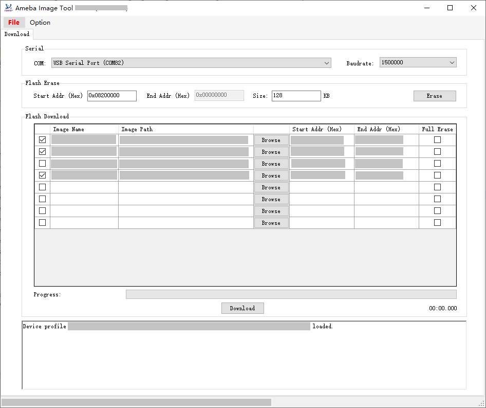 RTL8721Dx.rdev。打开 Image Tool, 点击 并选择适当的 Device Profile