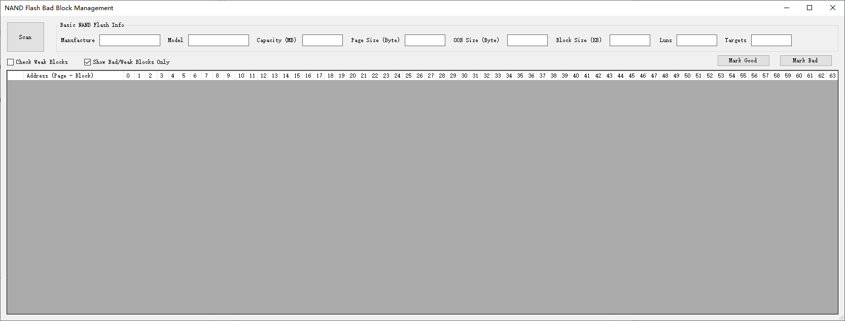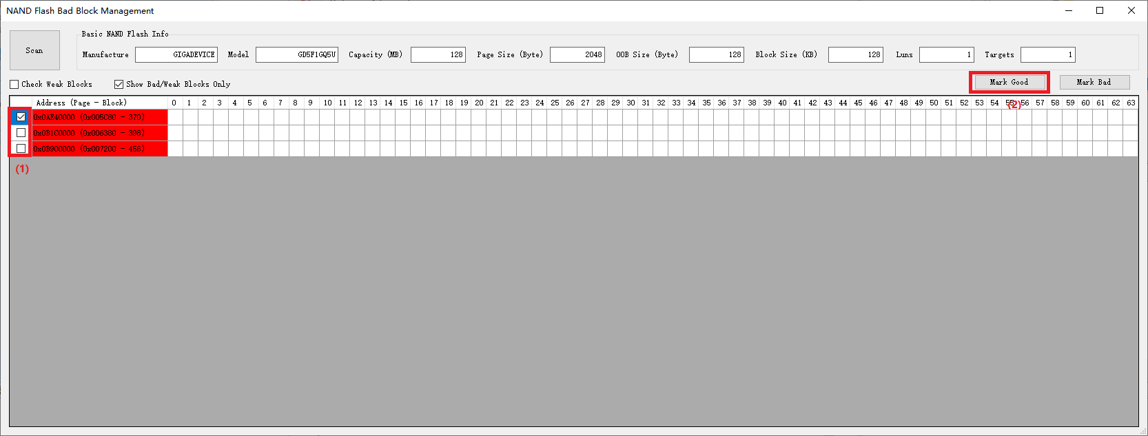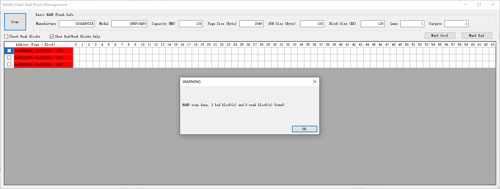 NAND 坏块管理功能专为专业技术人员设计,用于扫描或标记 NAND 块状态。此功能自版本 v2.5.10 起开始支持。