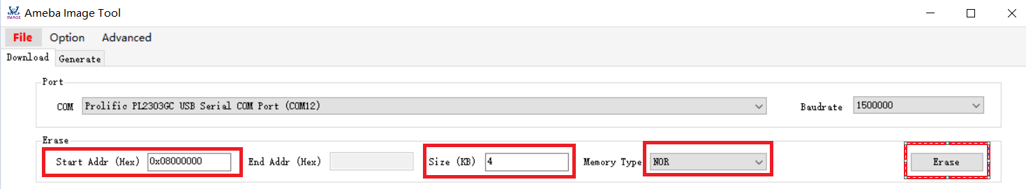 取消选中: 不完全擦除,仅擦除固件文件的实际大小,仅适用于 NOR Flash 的非文件系统分区。