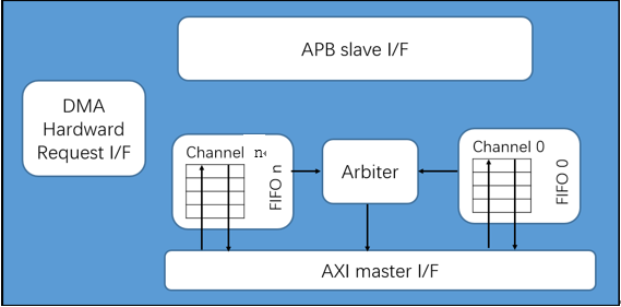 Arbiter: When multiple active DMA channels request data transfers simultaneously, the arbiter grants AXI bus access based on predefined priority scheduling policies. This ensures efficient and orderly utilization of the DMAC master interface resources in high-throughput scenarios.