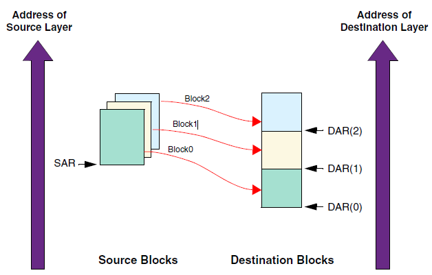 Supports large-capacity data block transfers, with a maximum single block transfer size up to 2,097,151 data items (based on the source transfer width).